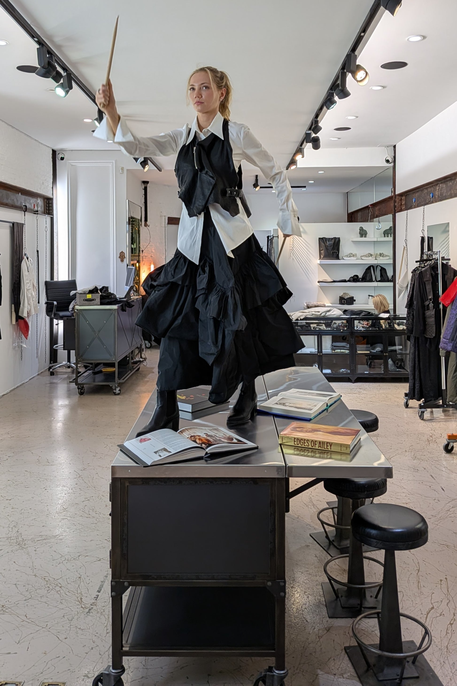 - Pull on. Voluminous skirt. Light weight. Nylon-ish feel