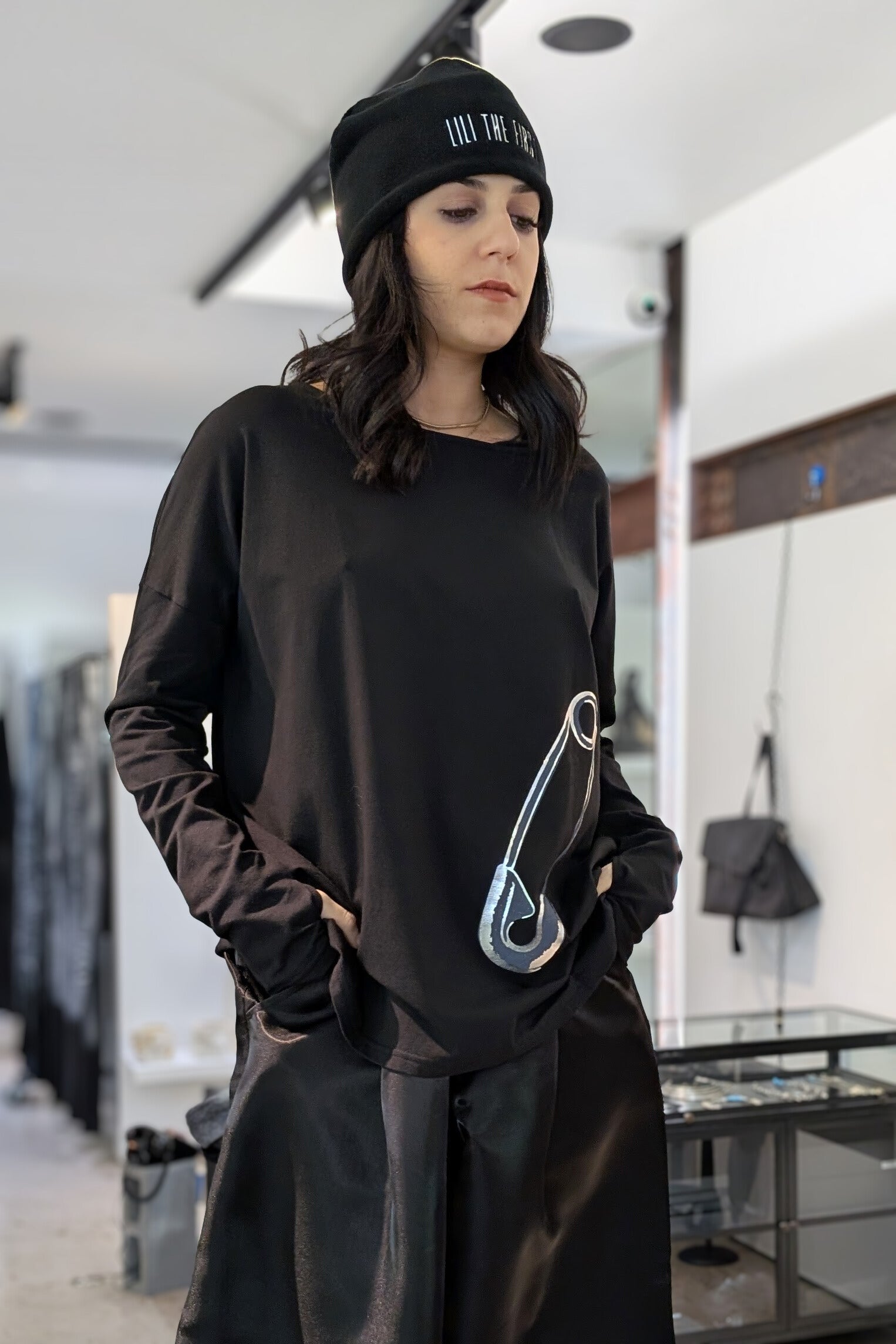for protection, a shiny safety pin.