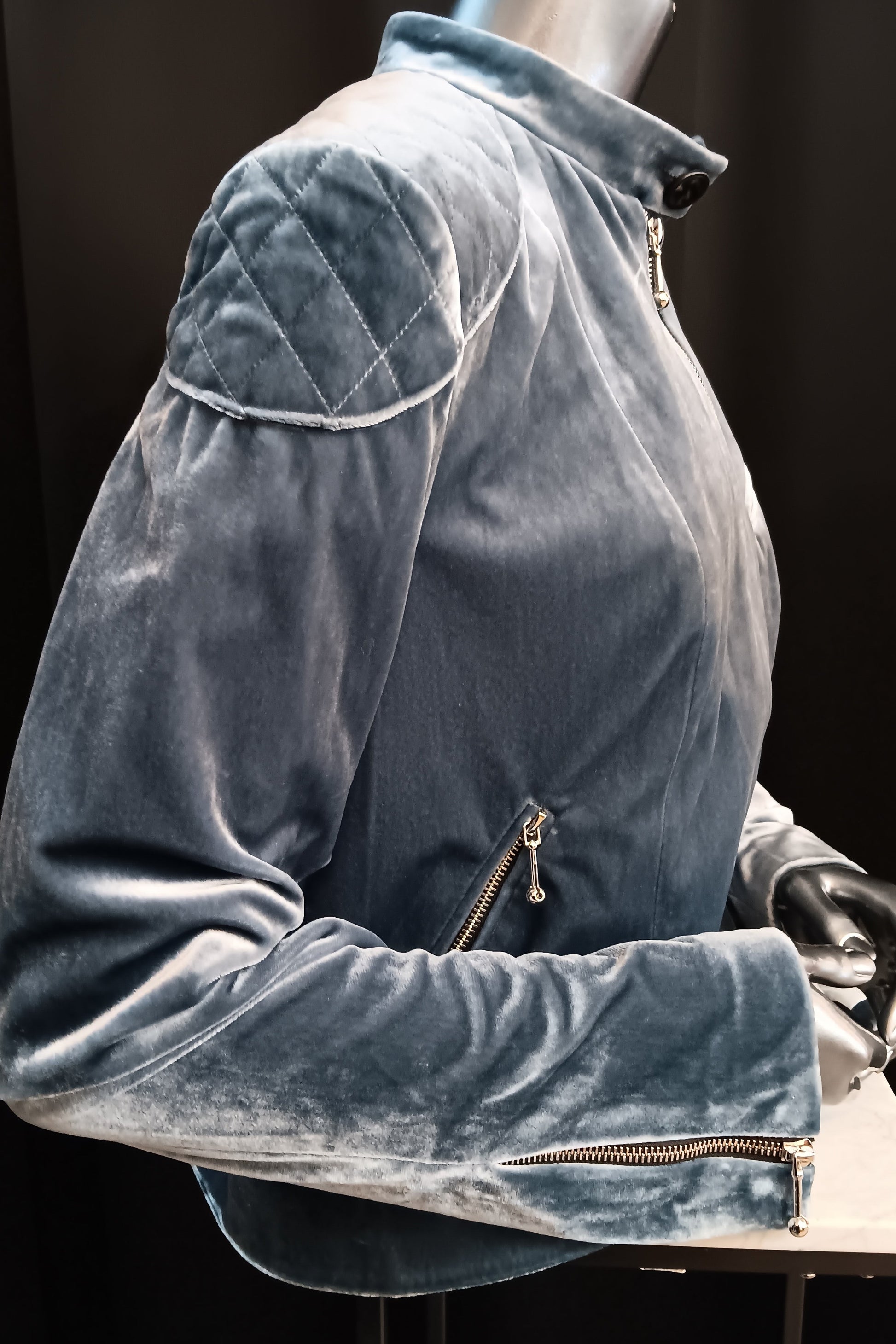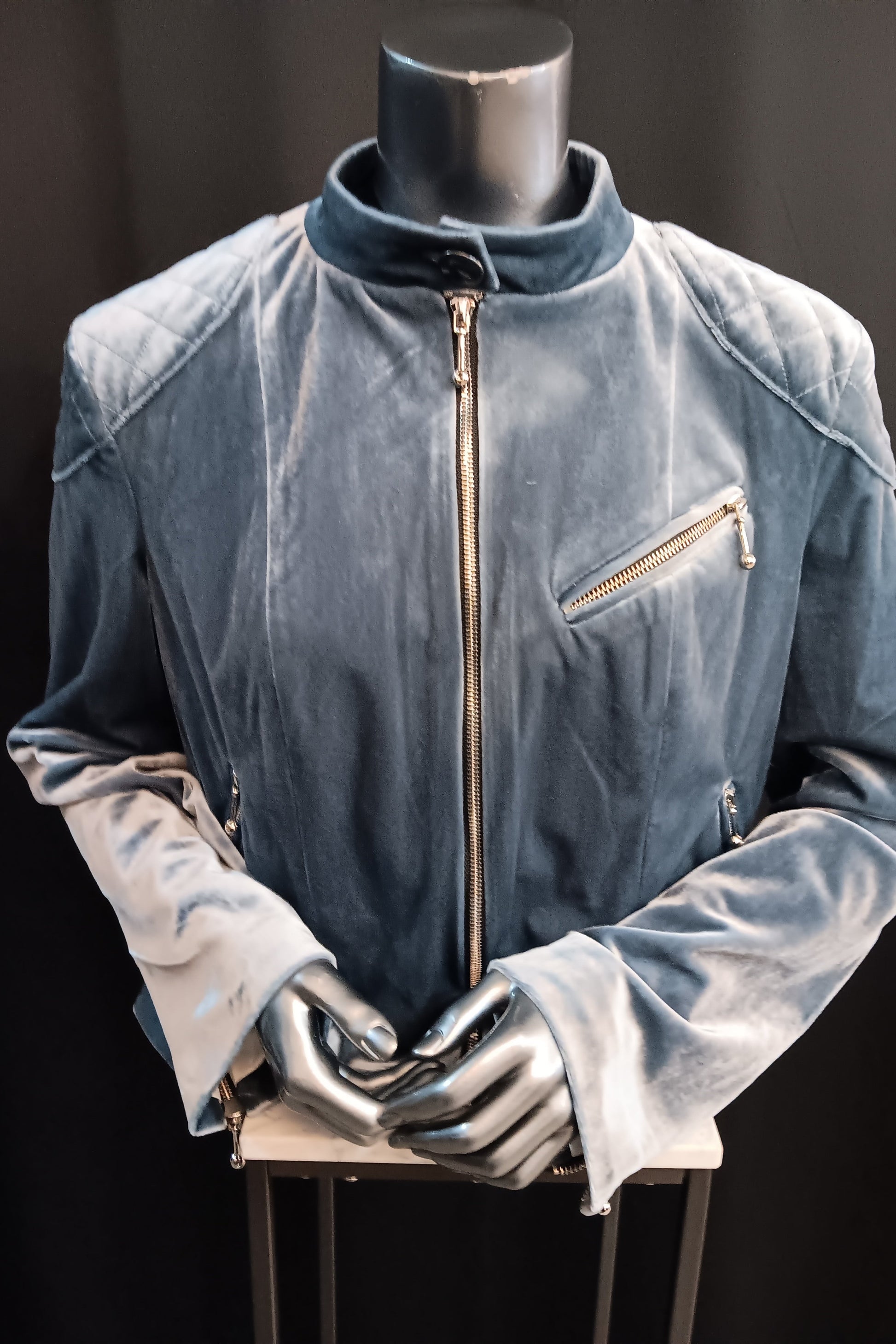 - Zipper closure with button on collar