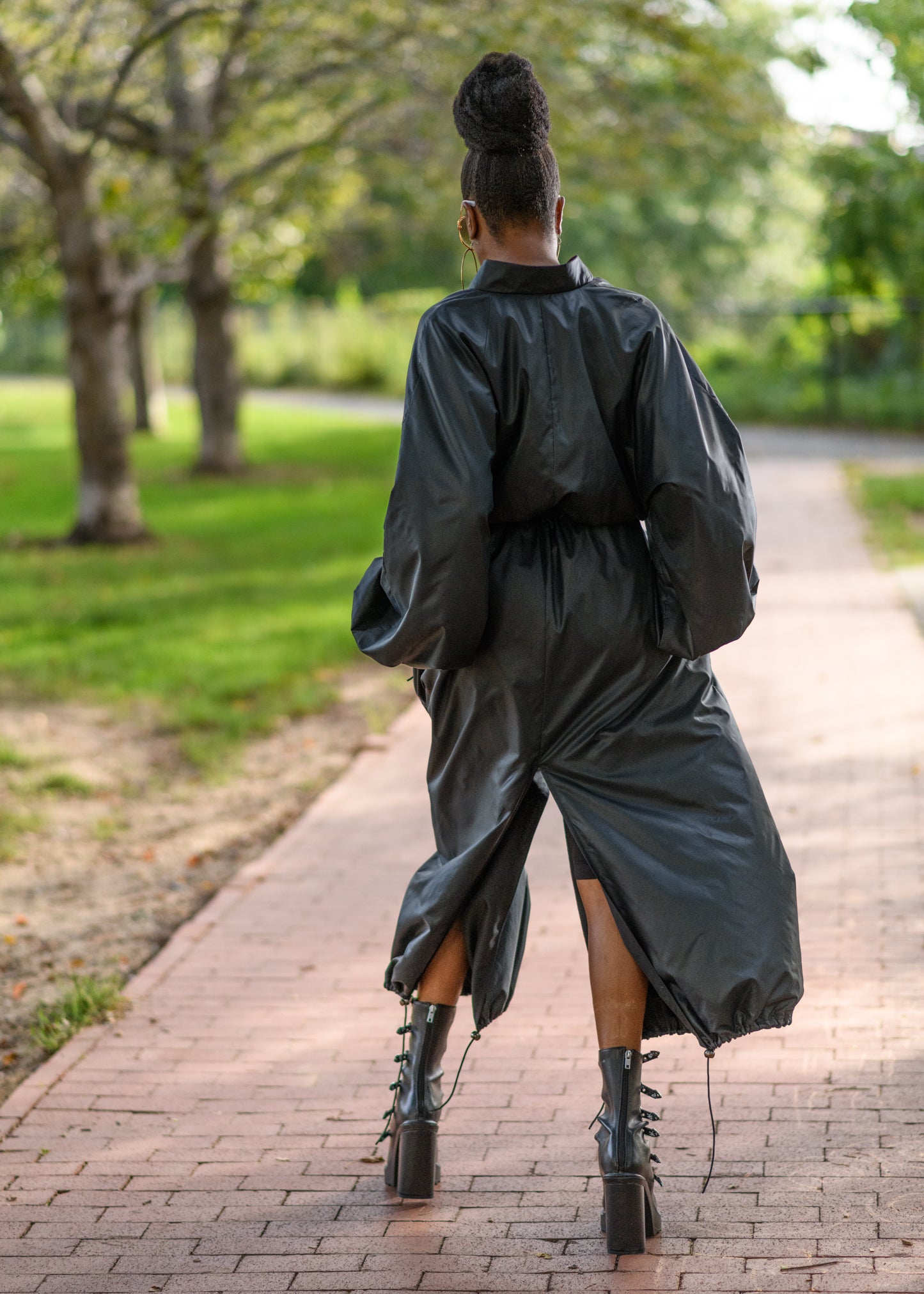 - Bi-directional zipper. Waist and bottom elastic cords with a toggle
