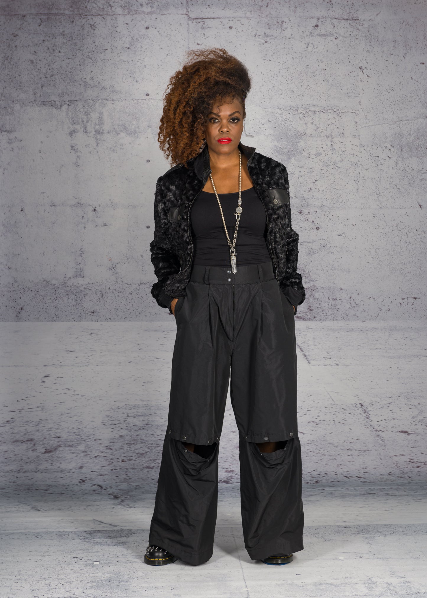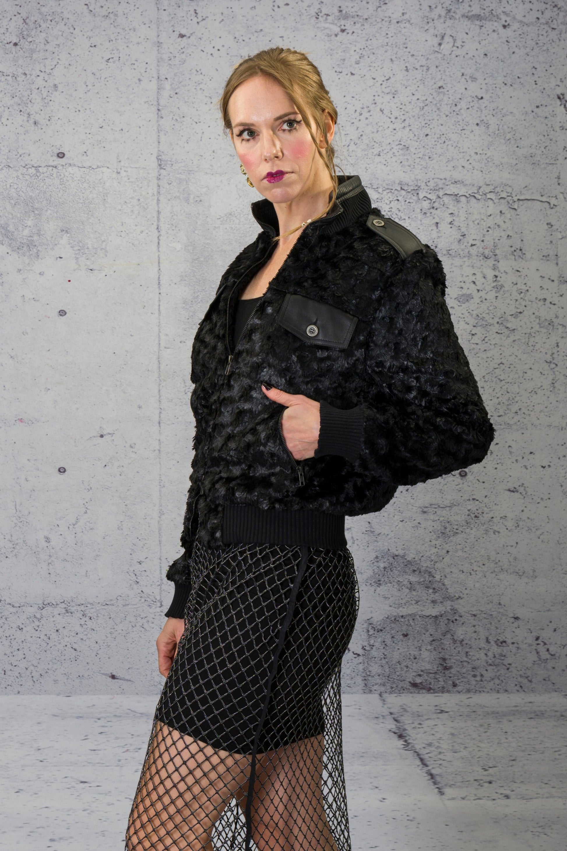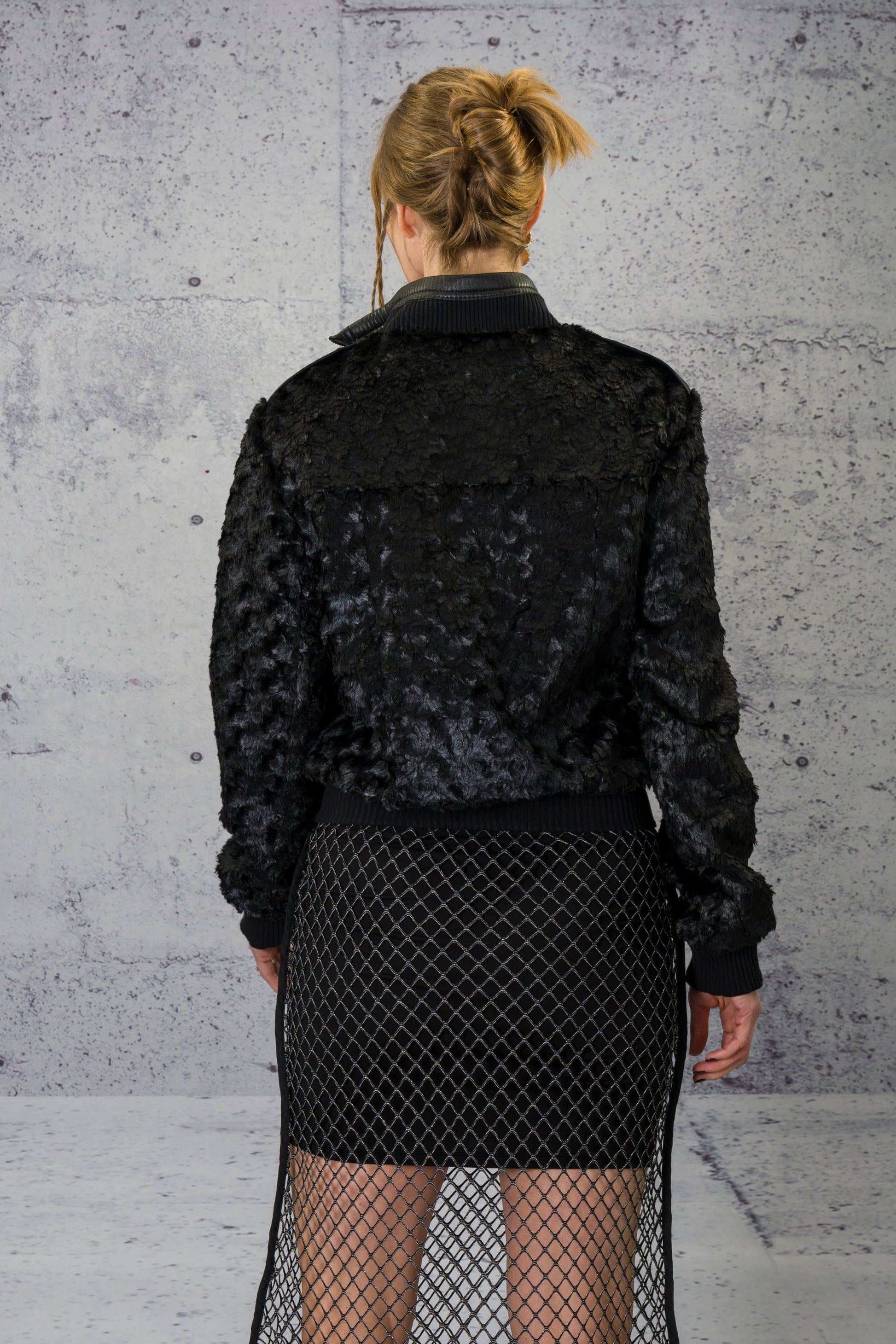 This "eye lashes" bomber jacket is everything between the lady and biker. A soft look with rough edges.